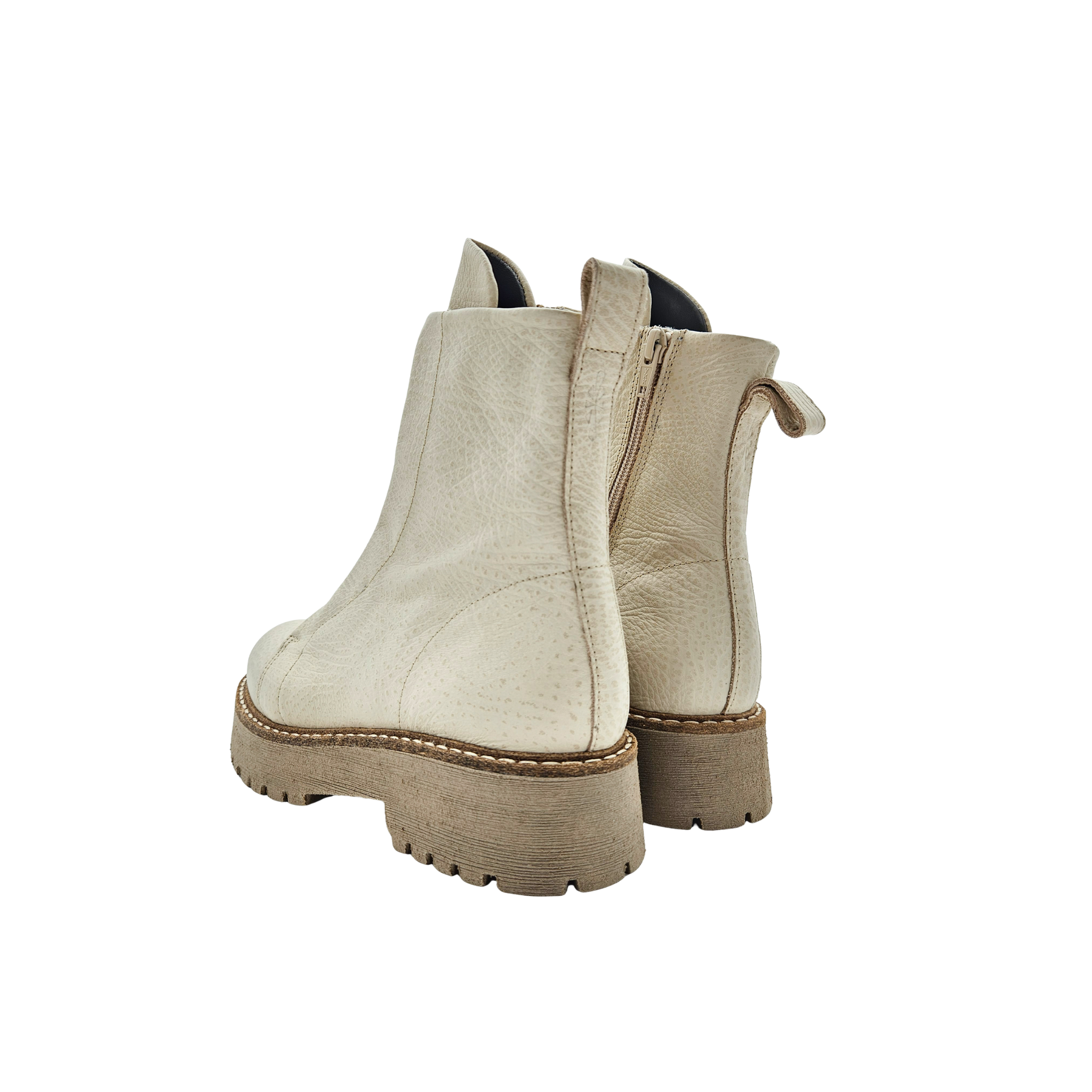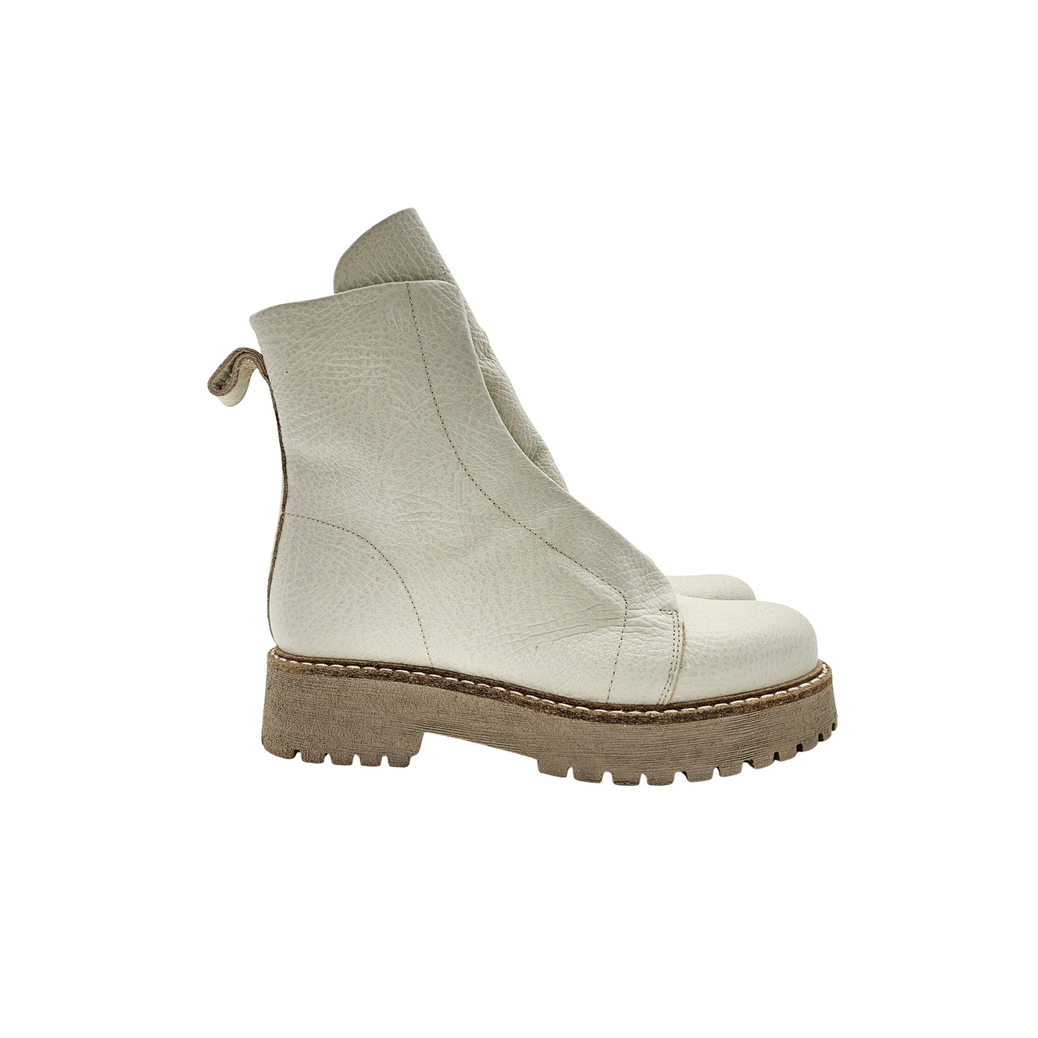 Anfibio in pelle martellata firmato Patrizia Bonfanti. Disponibile in due varianti colore ice e black.