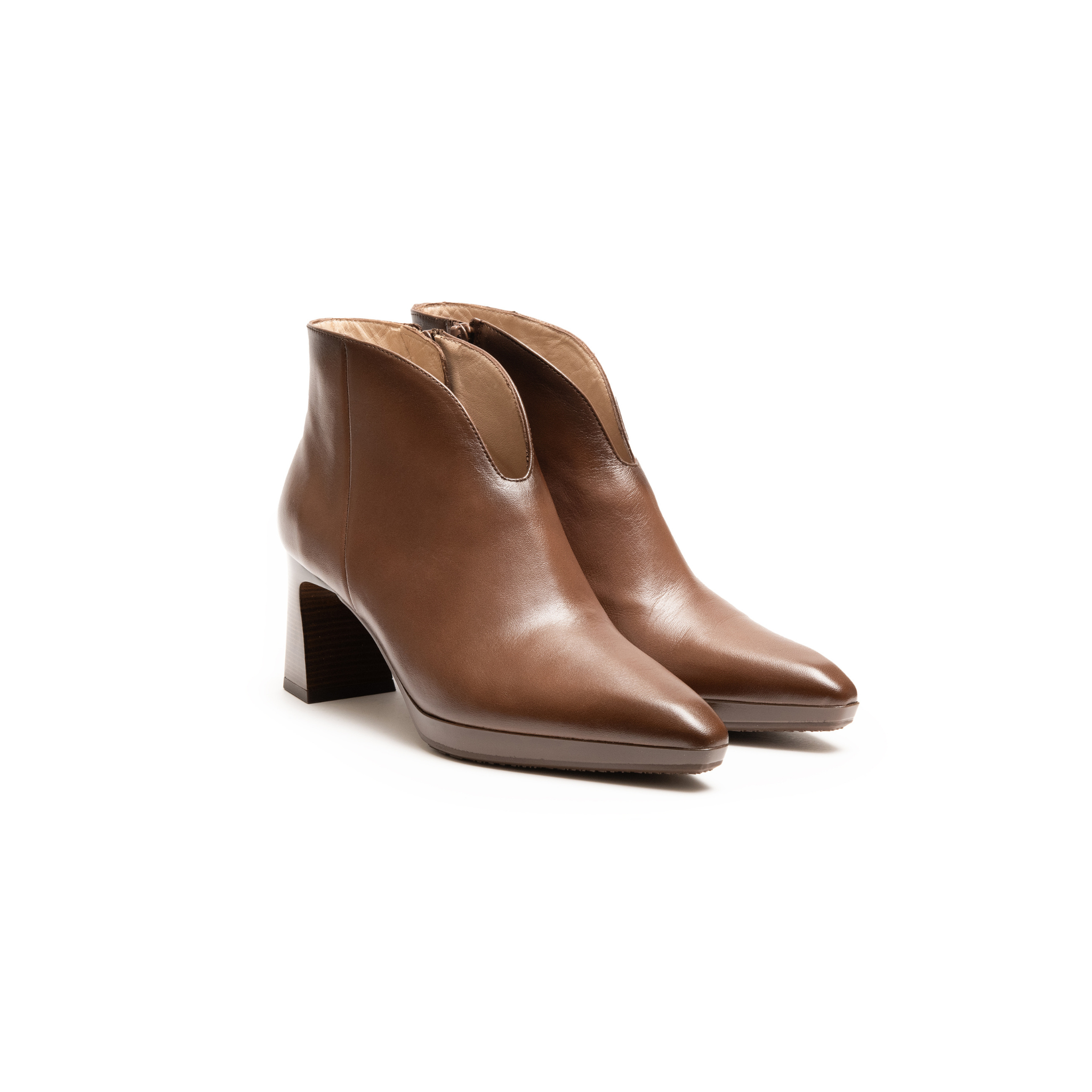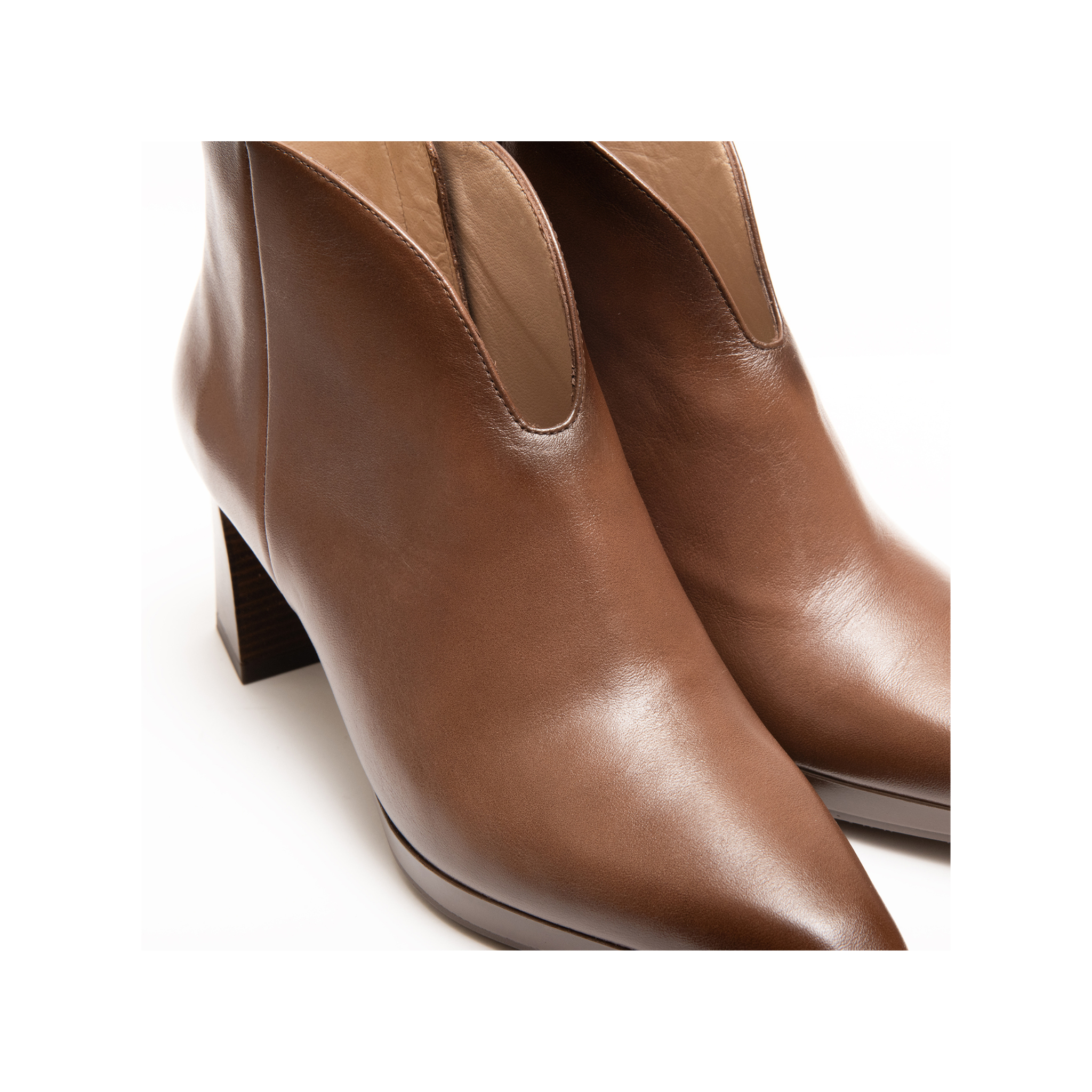 Elegante stivaletto alla caviglia dalle linee morbide e raffinate. Lo scollo a V slancia la silhouette e lo rende perfetto da abbinare sia a gonne che a pantaloni, per un look femminile e sofisticato in ogni occasione.