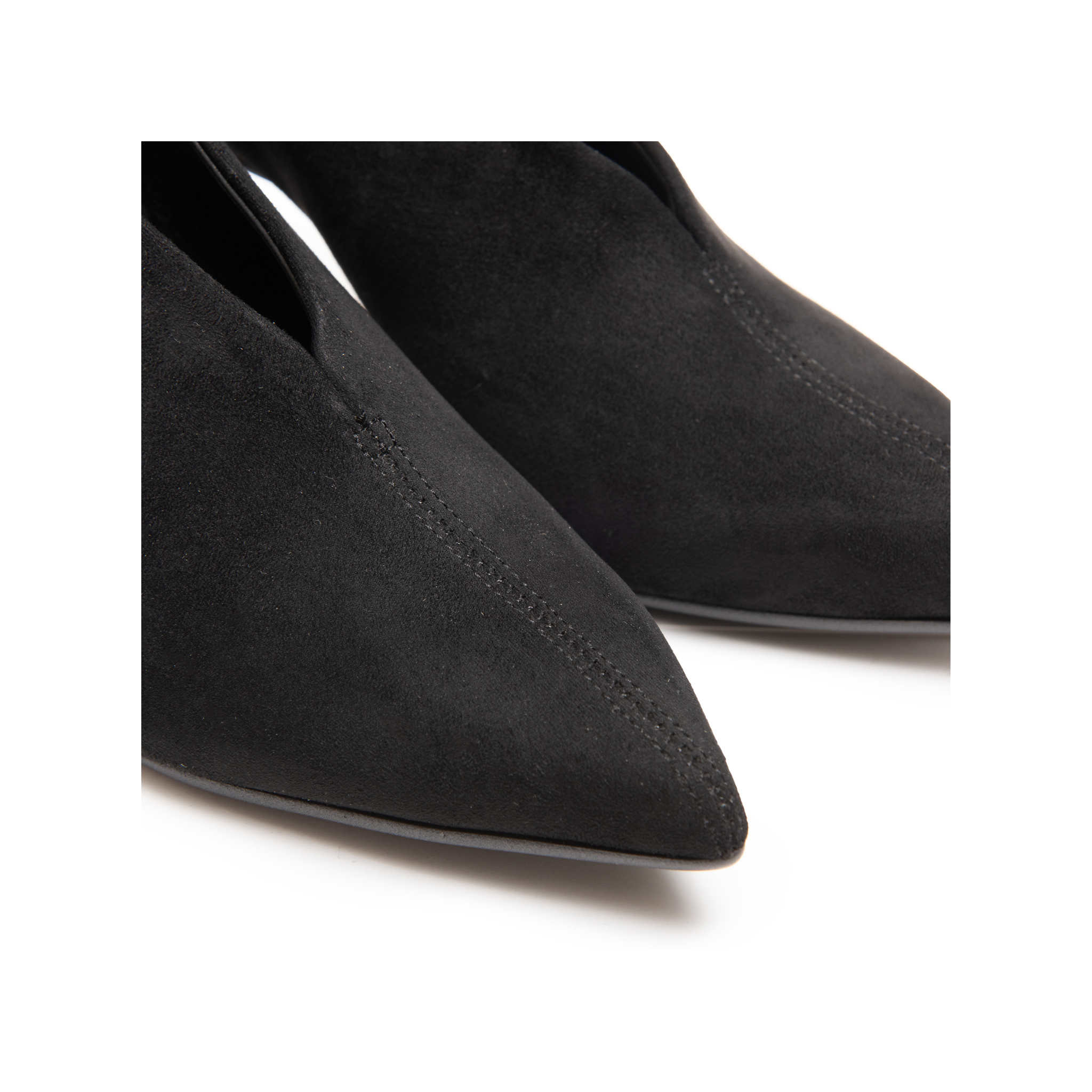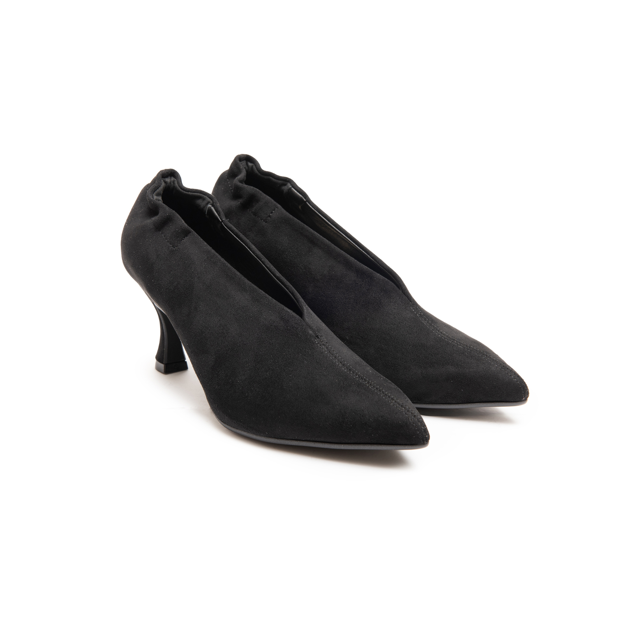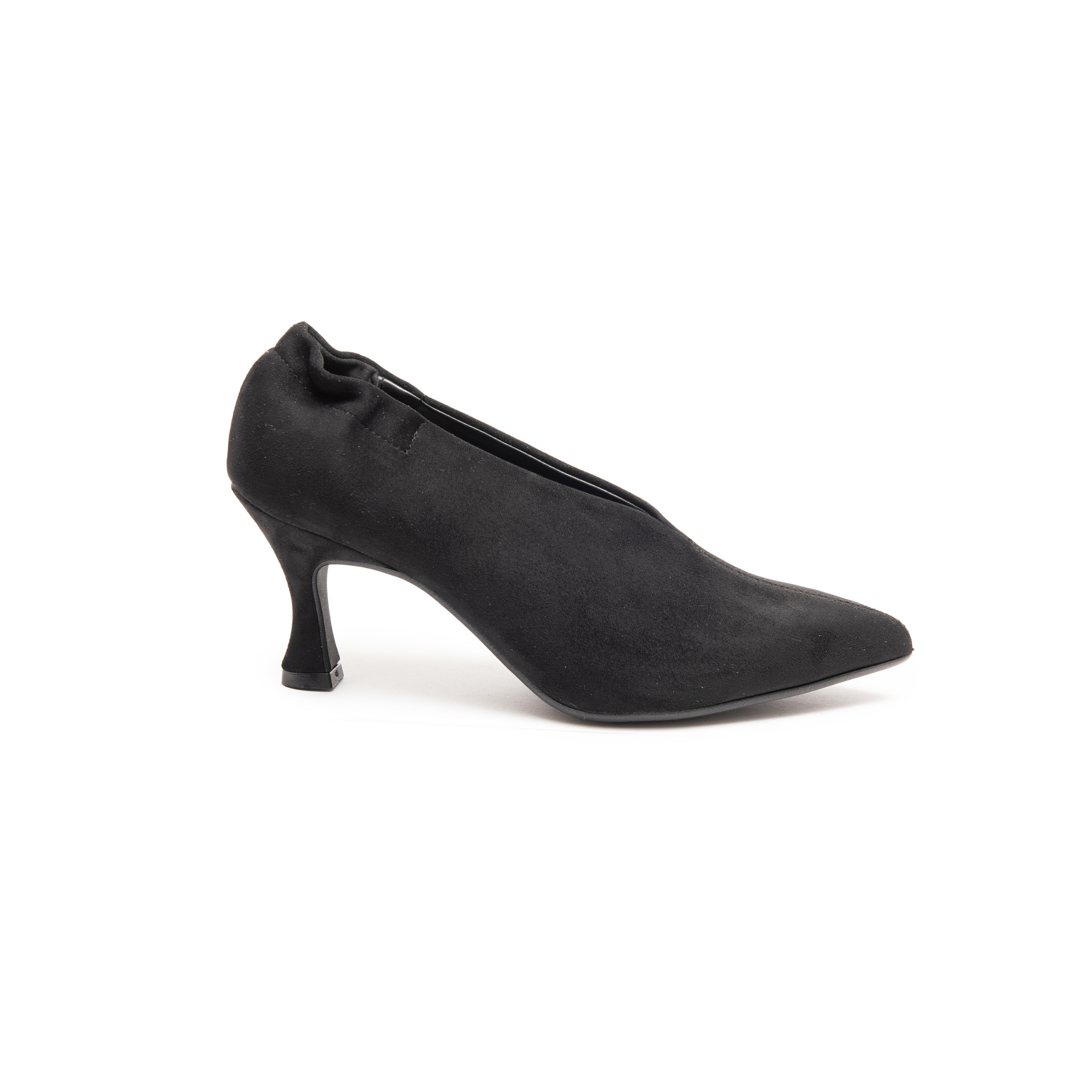 Décolleté in morbido camoscio, dal design raffinato e avvolgente, pensato per valorizzare la figura grazie al profondo scollo a V, che slancia con eleganza.