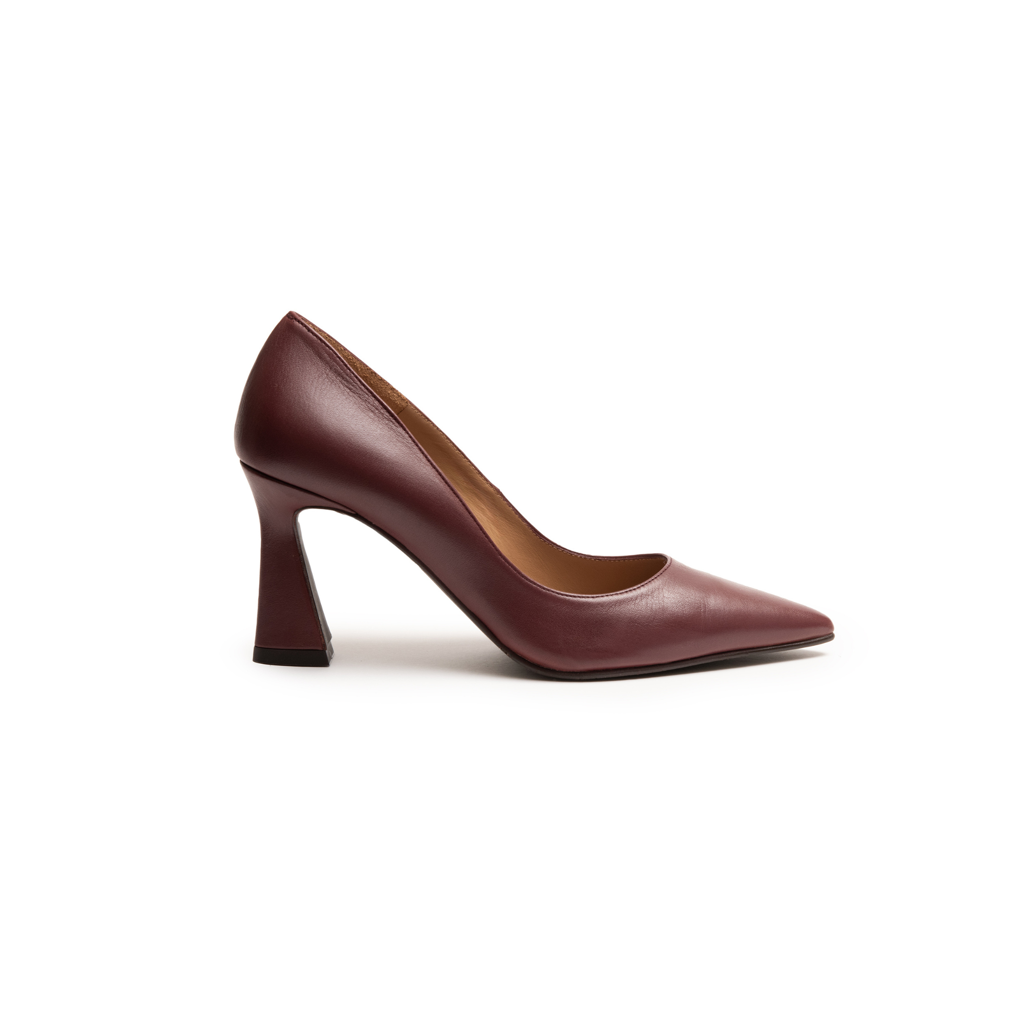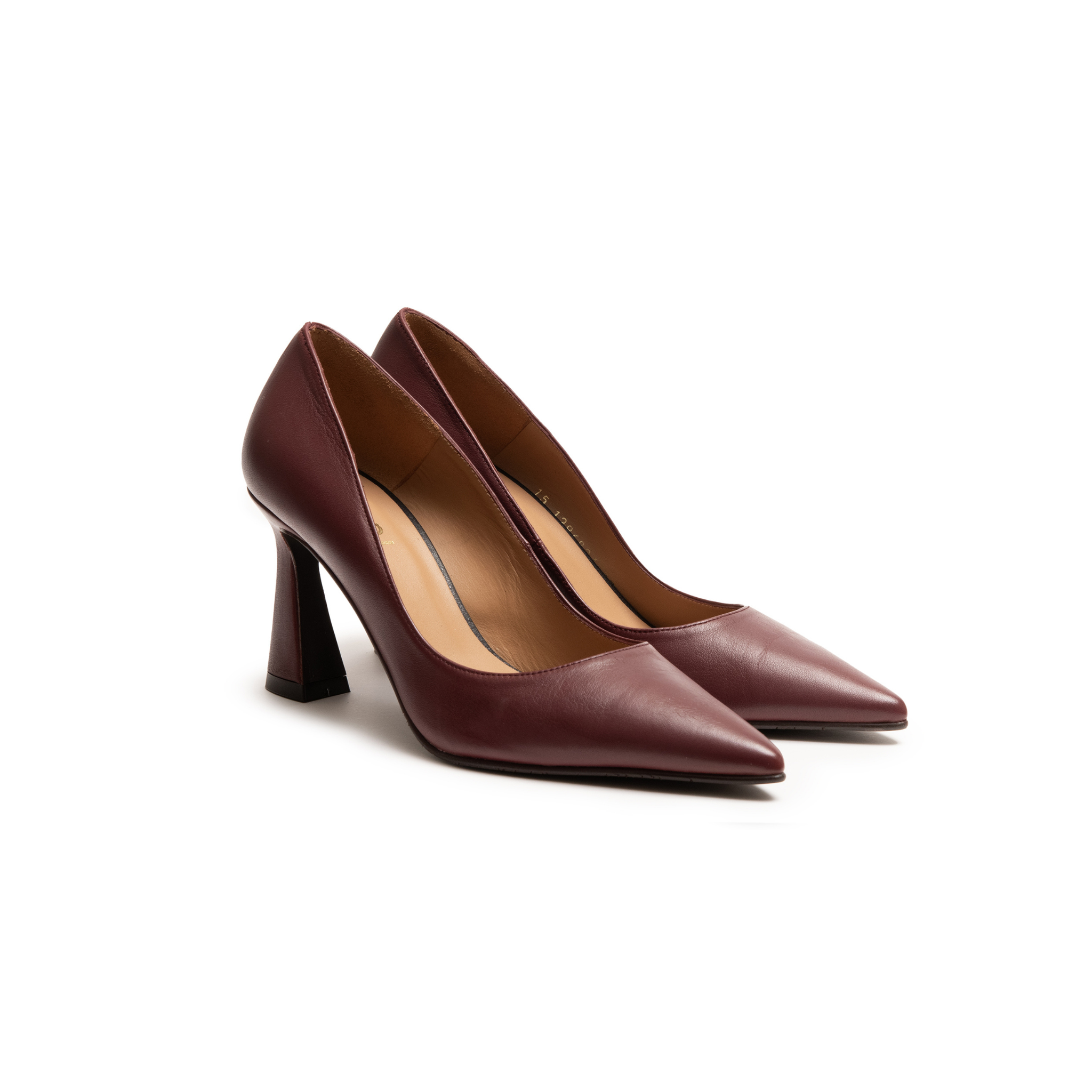 Elegante décolleté bordeaux realizzato in morbida pelle, con tacco a rocchetto che slancia la silhouette senza rinunciare al comfort. La suola New Gel garantisce una calzata morbida e sicura, mentre la suola antiscivolo assicura stabilità a ogni passo.