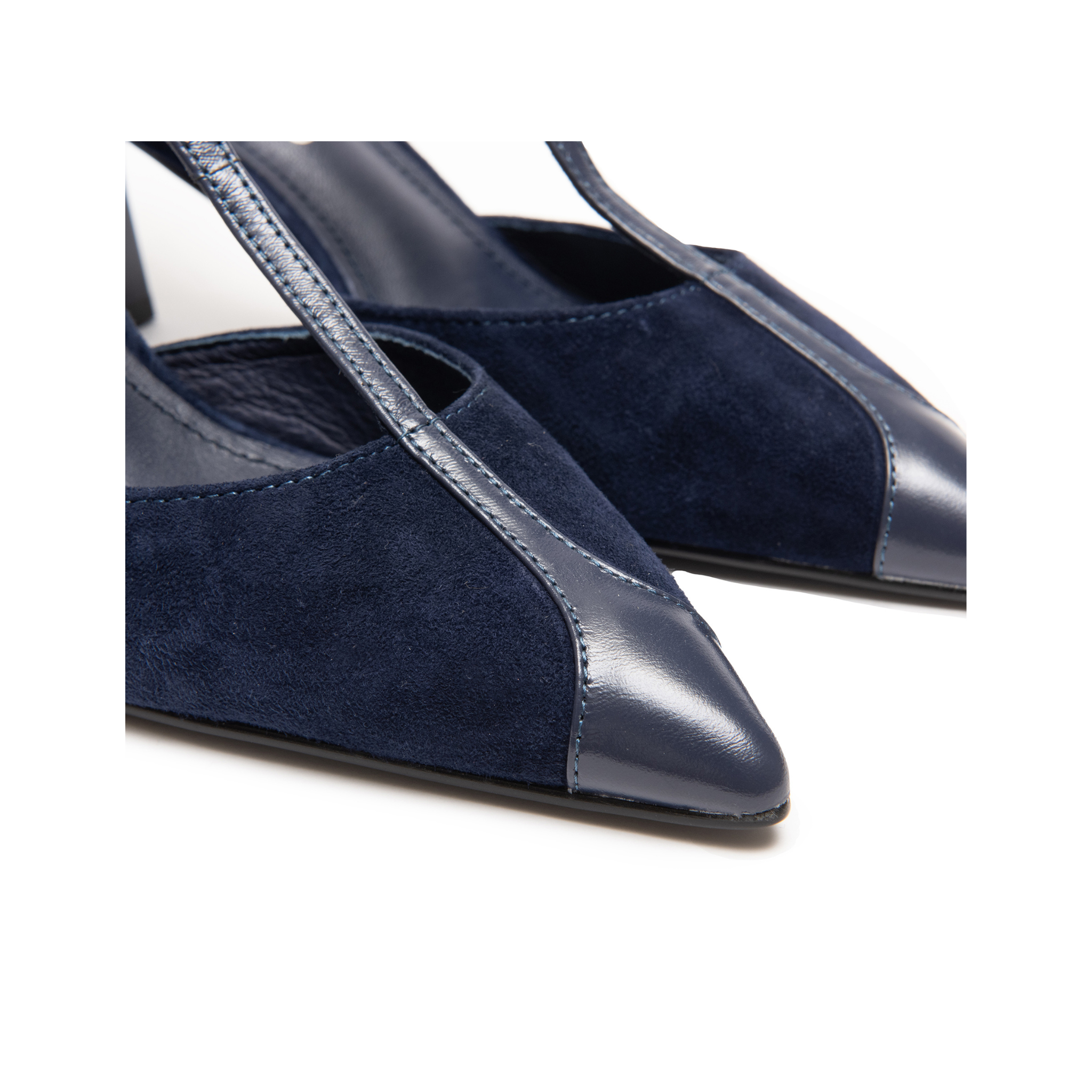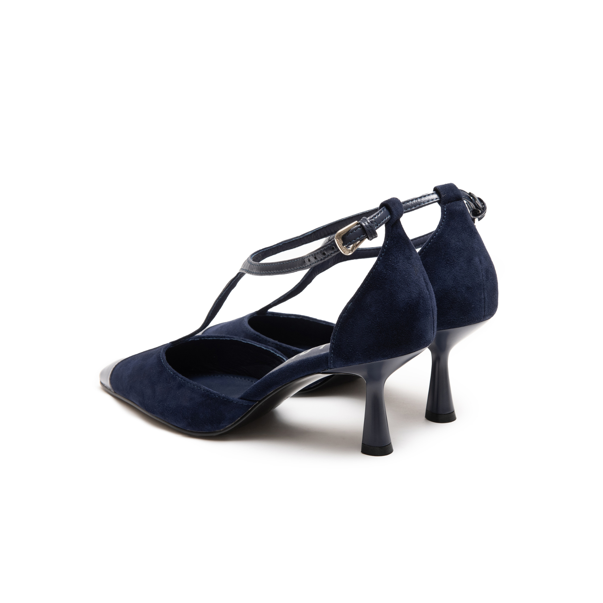 - Décolleté  in camoscio con dettagli in pelle tono su tono