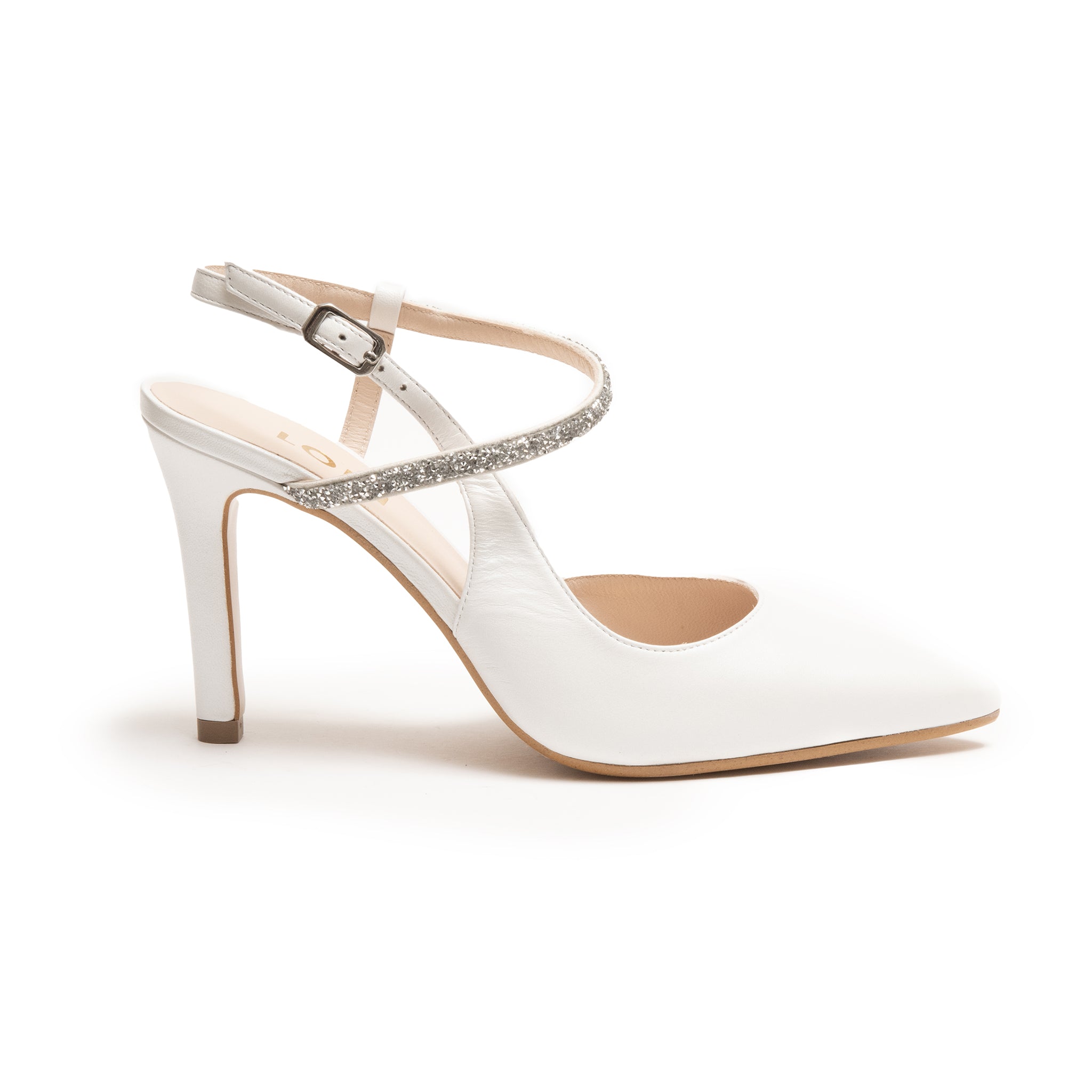 Se desideri qualcosa di speciale per il tuo grande giorno, questa slingback con la sua decorazione gioiello che aggiunge un tocco di luminosità e sofisticatezza è la scelta perfetta.