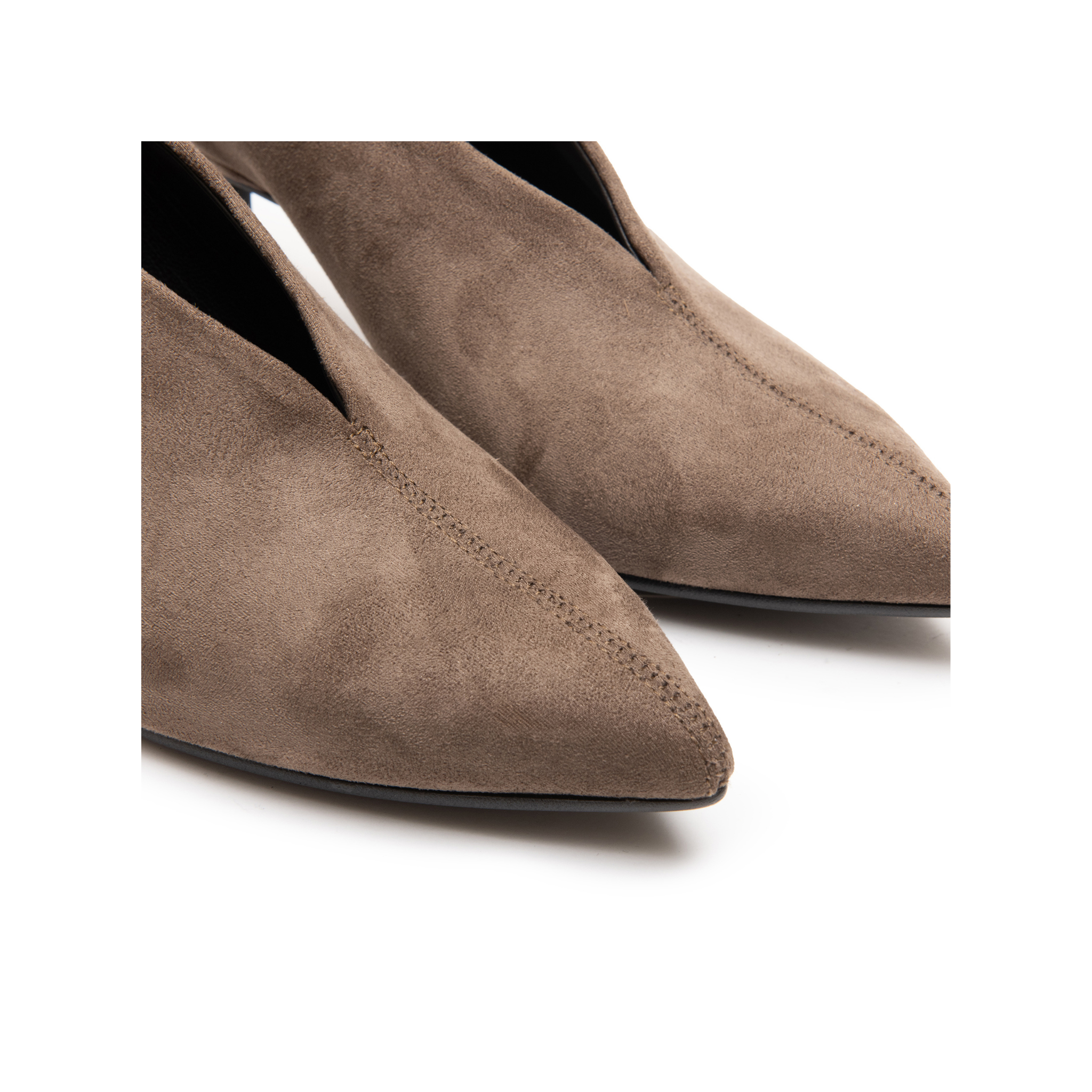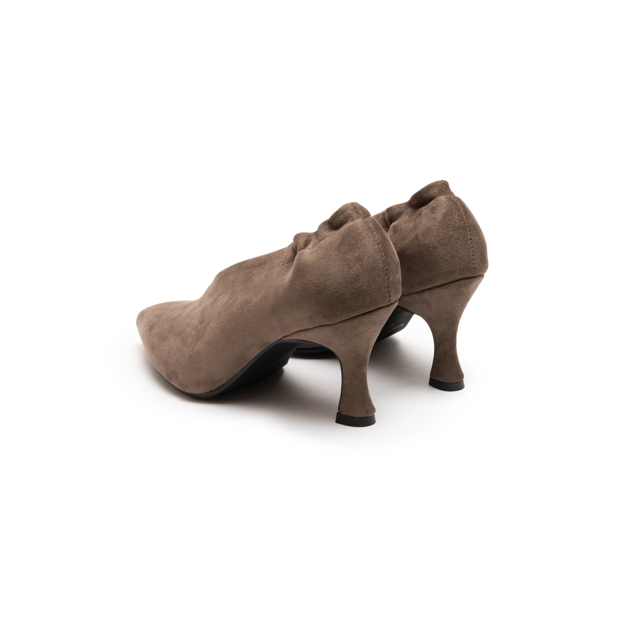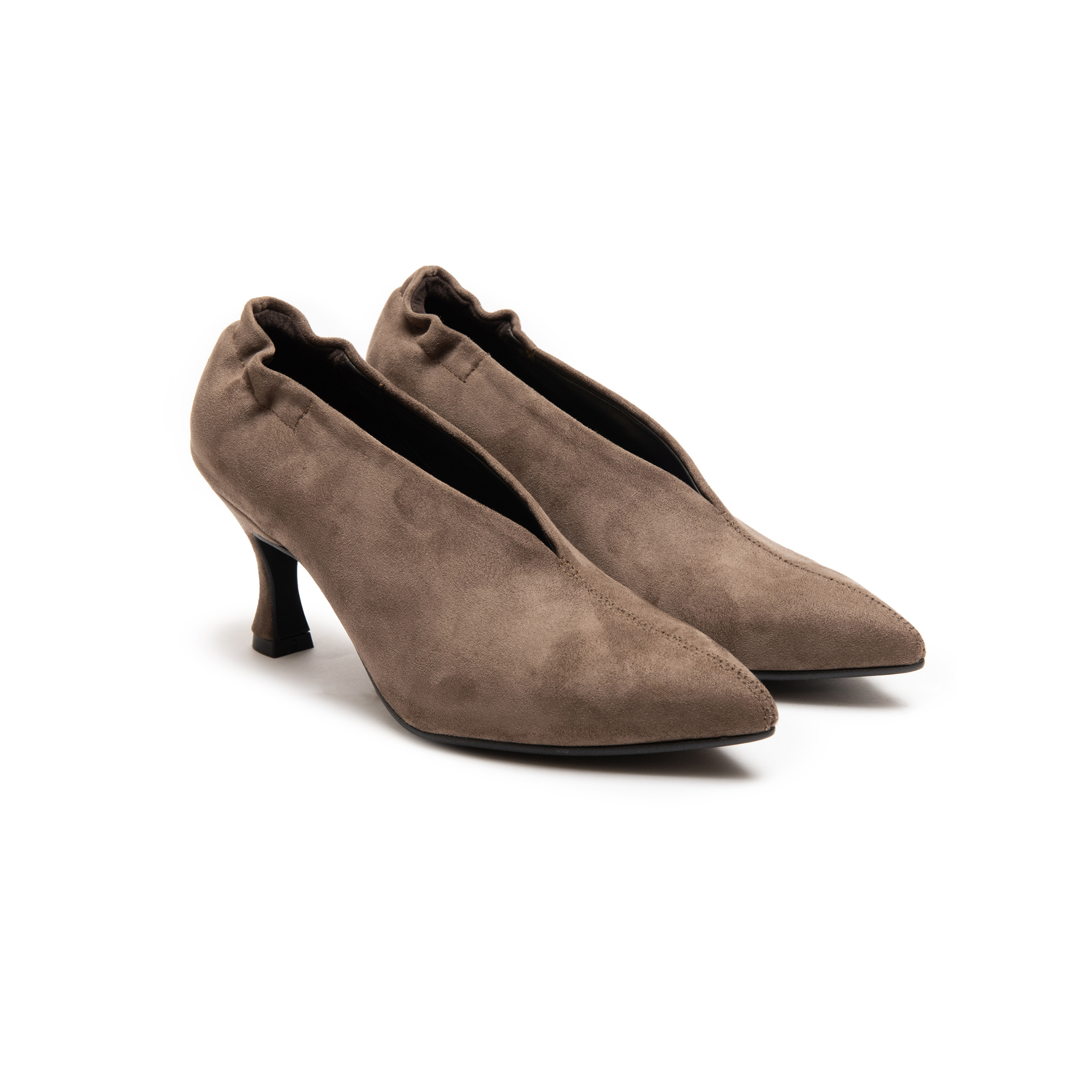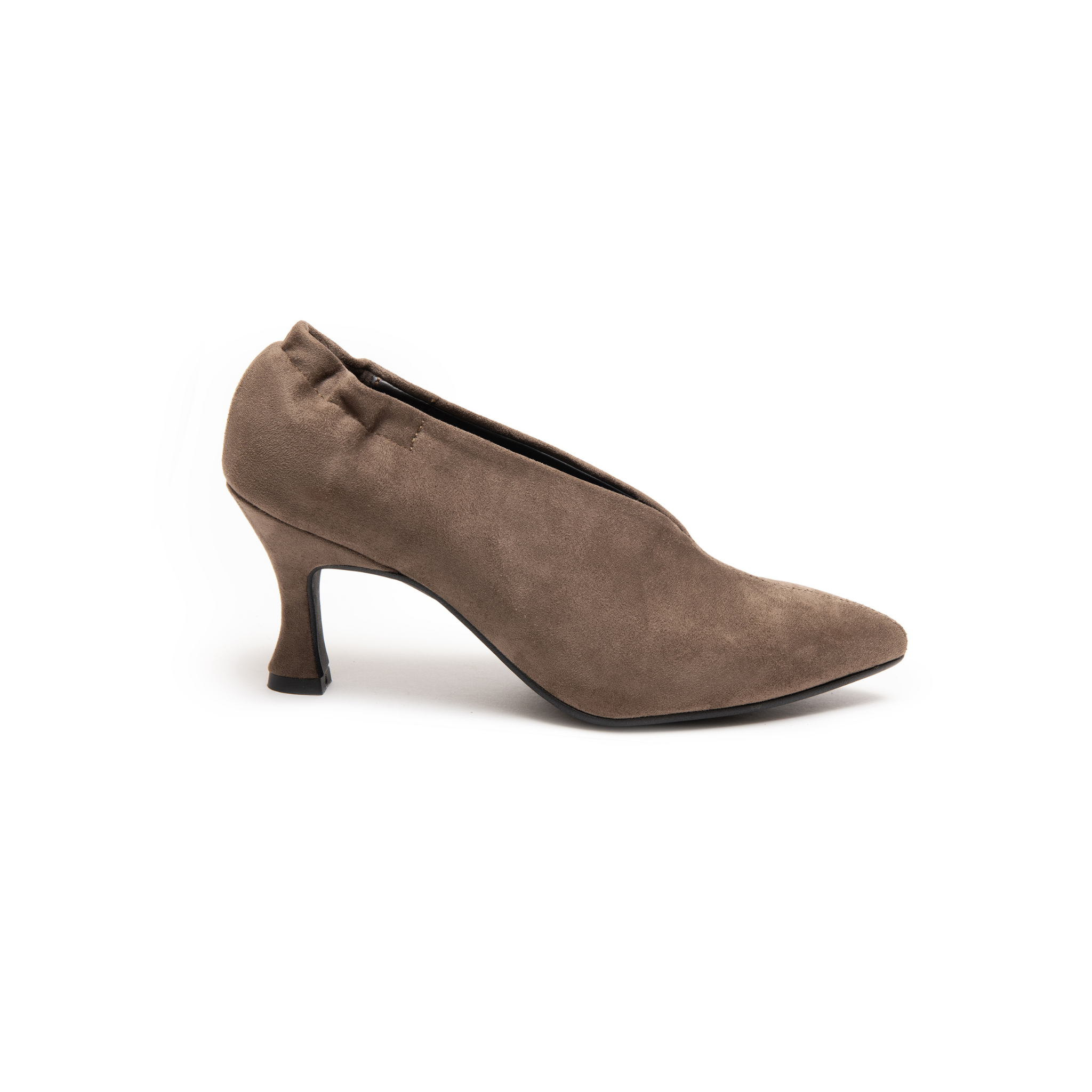 Décolleté in morbido camoscio, dal design raffinato e avvolgente, pensato per valorizzare la figura grazie al profondo scollo a V, che slancia con eleganza.