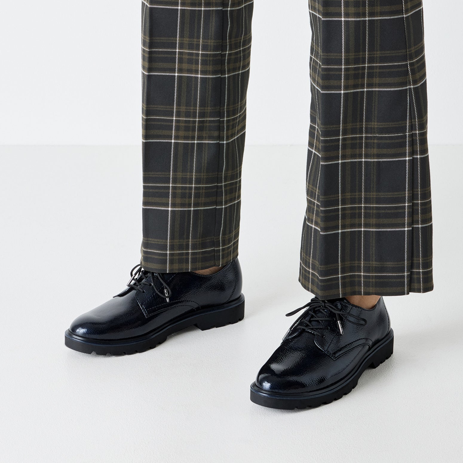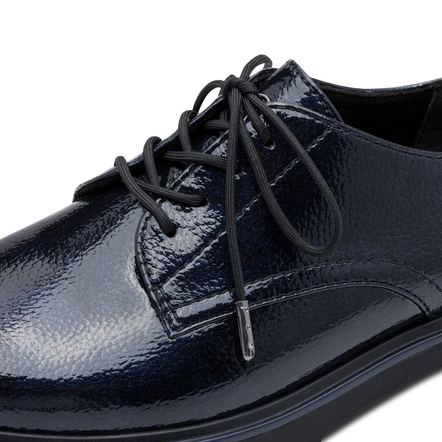 Derby navy lucida, dal colore blu notte. Comoda e pratica perfetta per accompagnarti durante tutta la giornata.