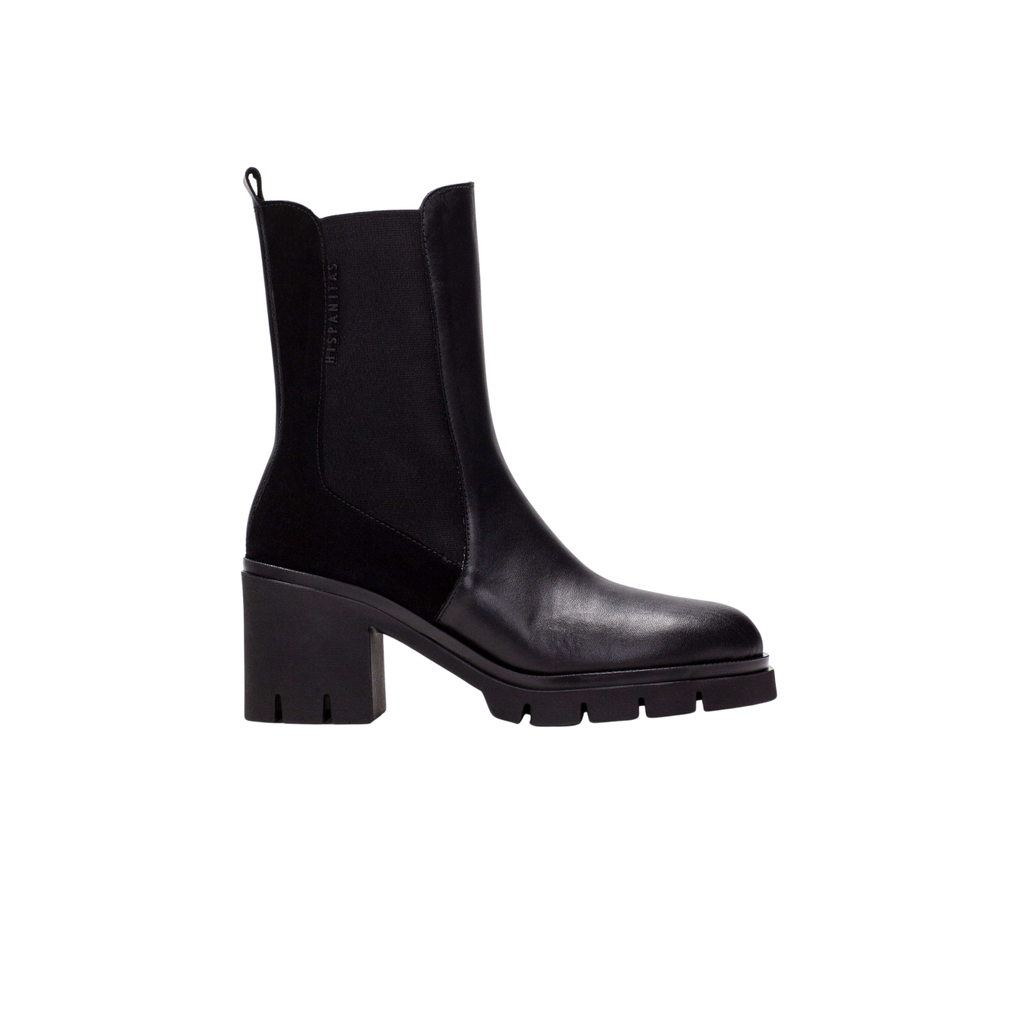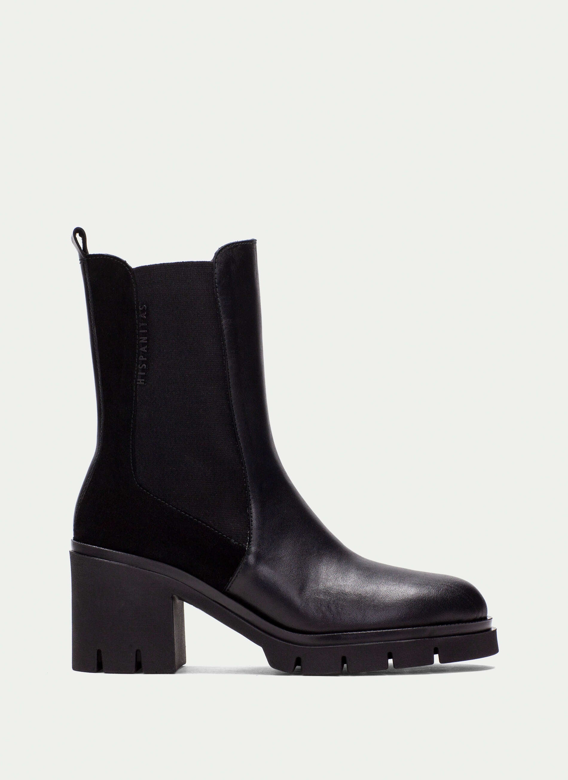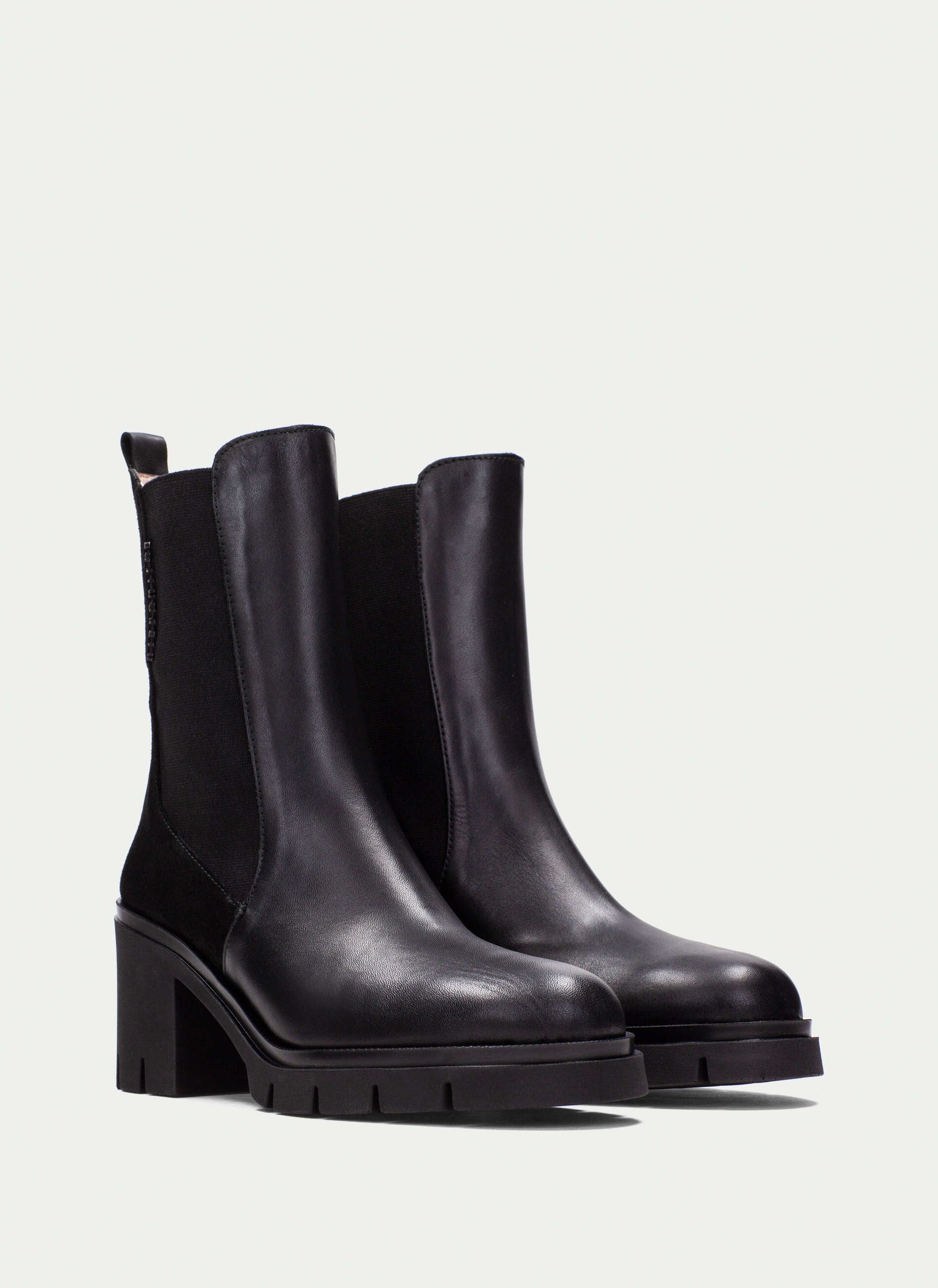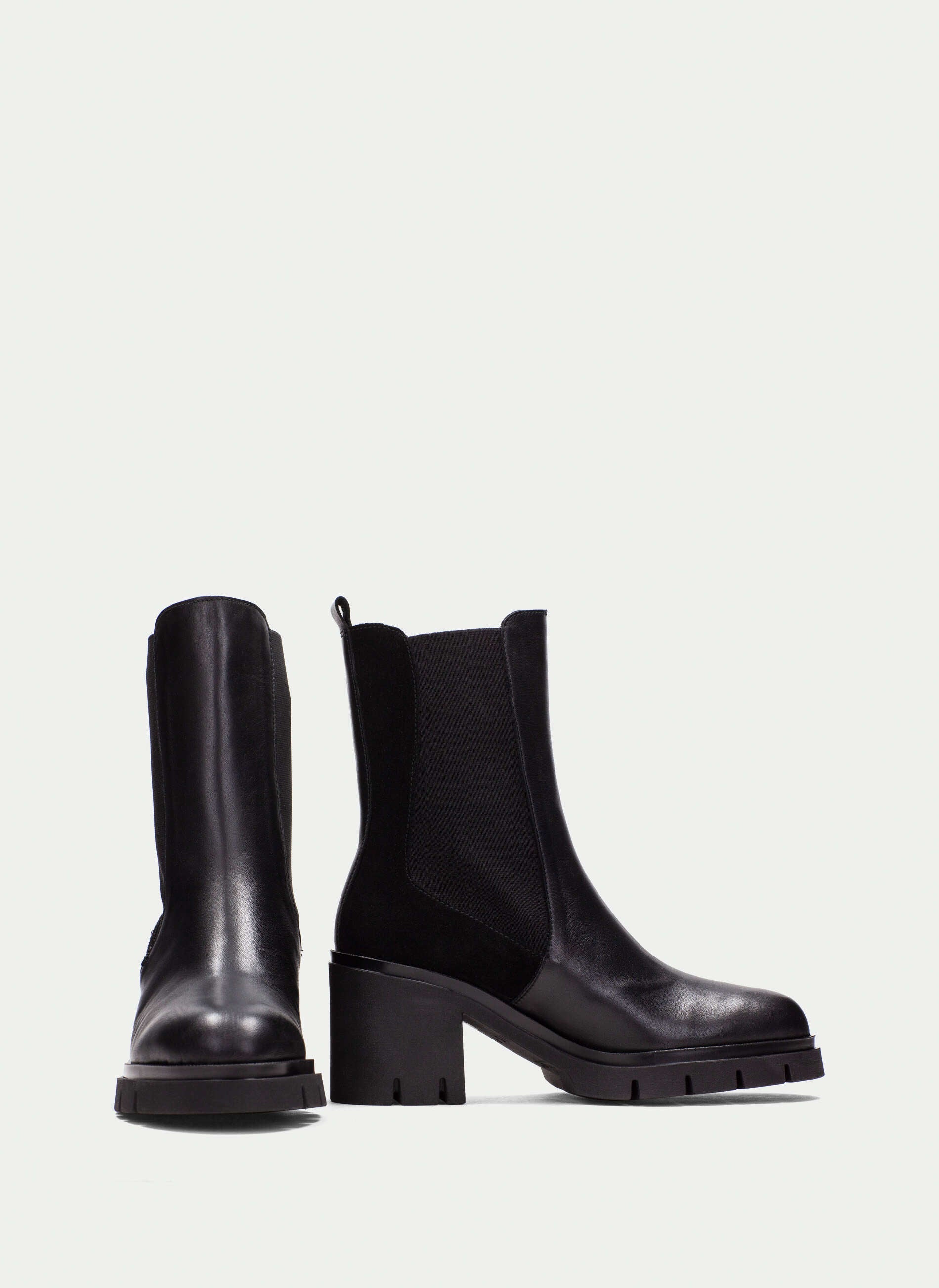 Stivaletto Chelsea in pelle con suola track. Disponibile in due varianti colori: nero e verde. Dotato di elastici laterali e linguetta posteriore per una calzata facile.