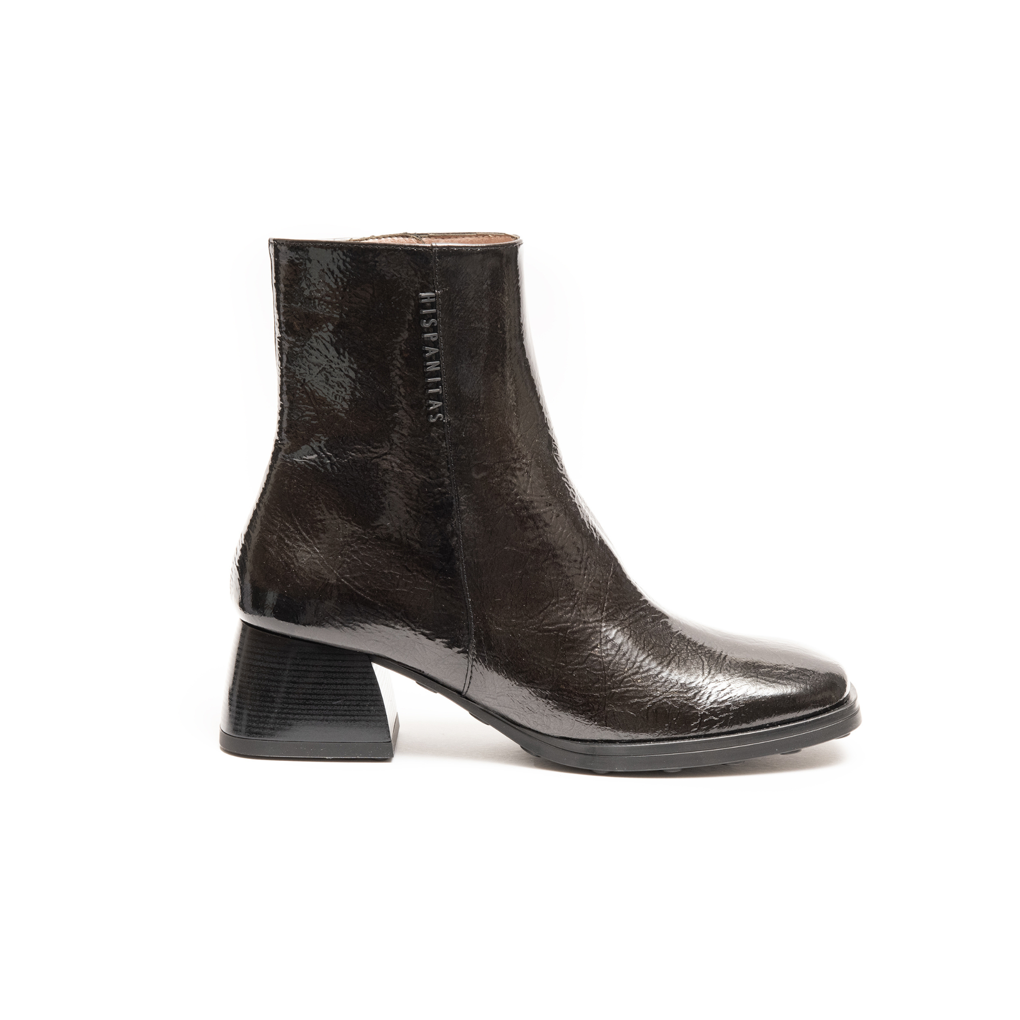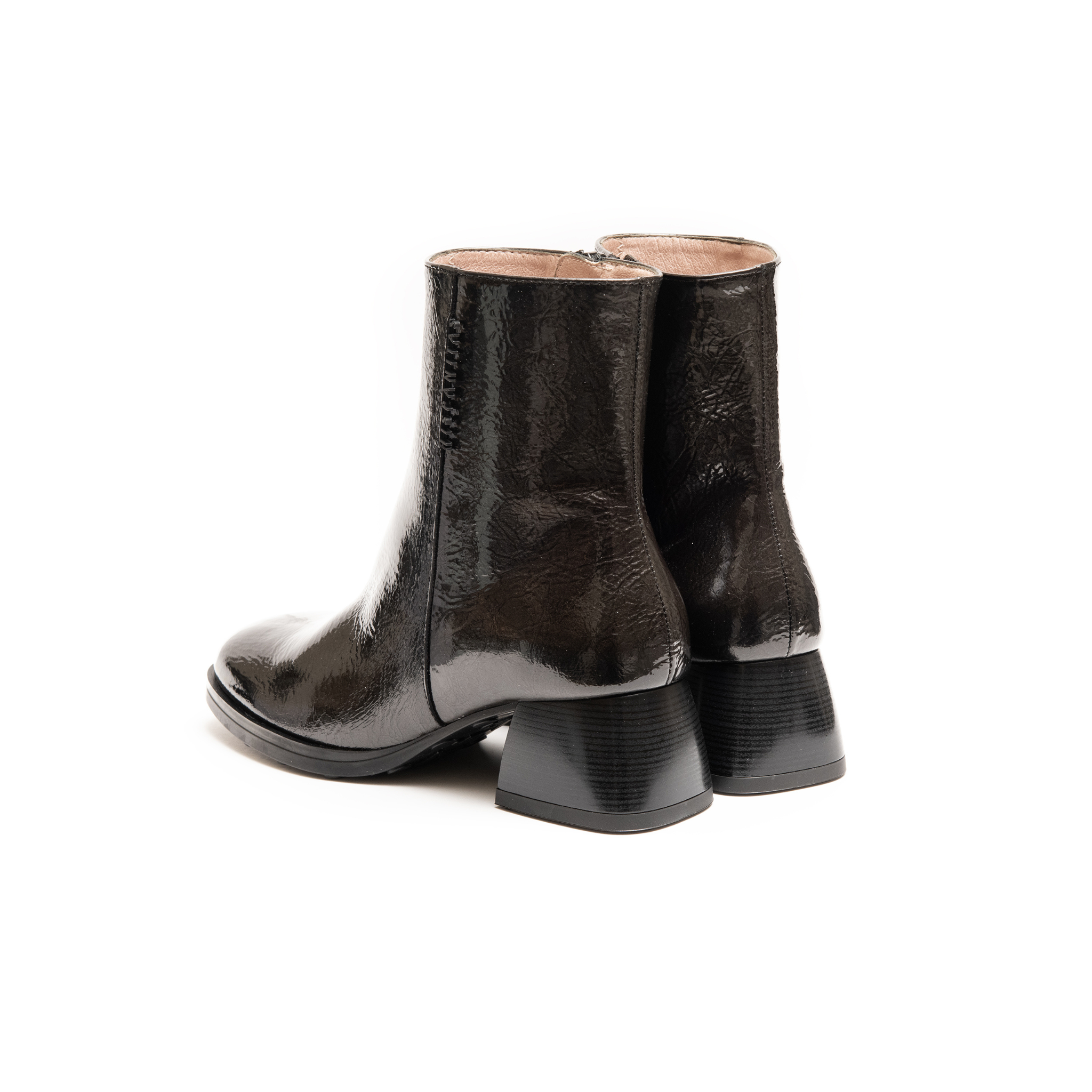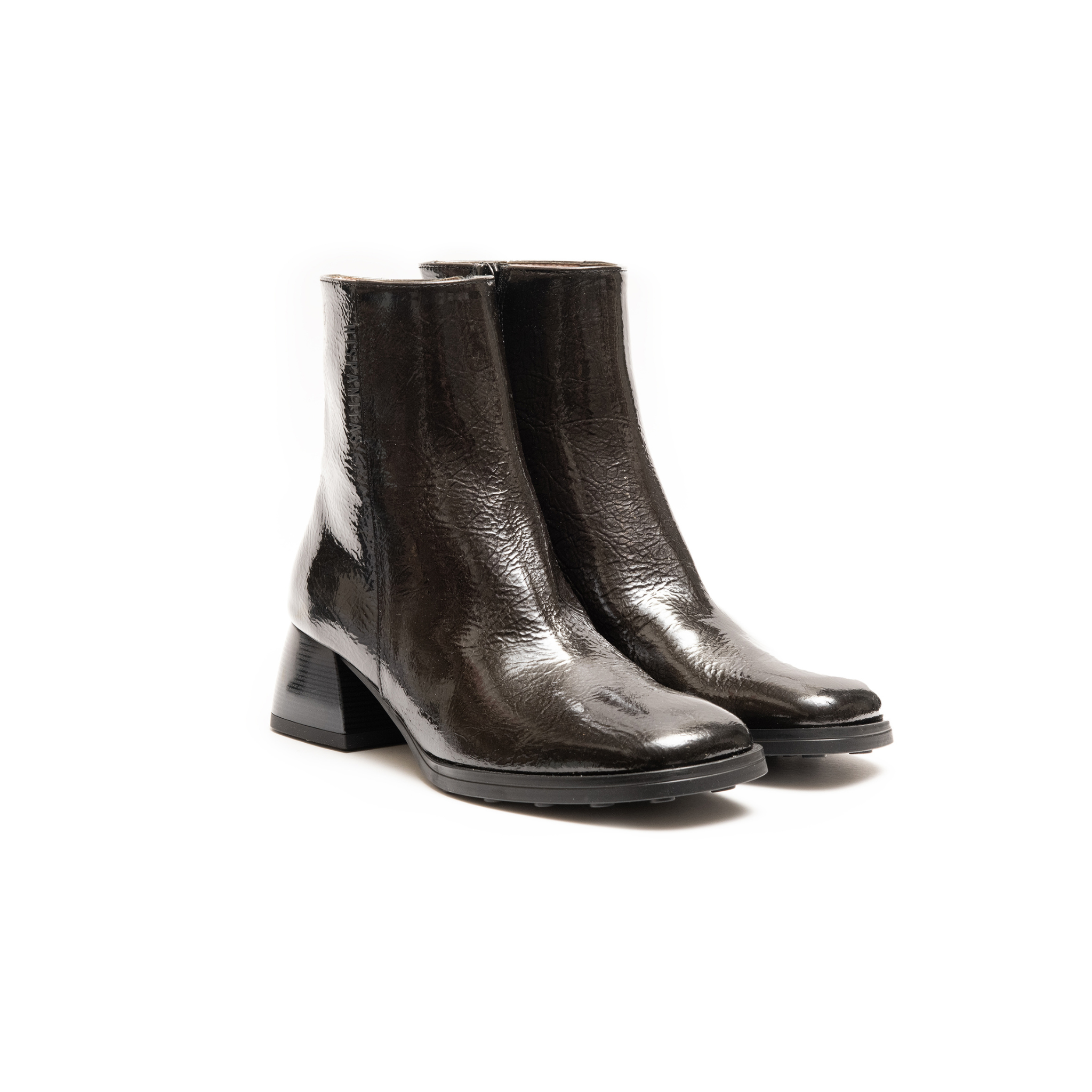 Stivaletto lucido dalla punta squadrata. Comodo e pratico, facile da abbinare sotto ogni tipo di look.