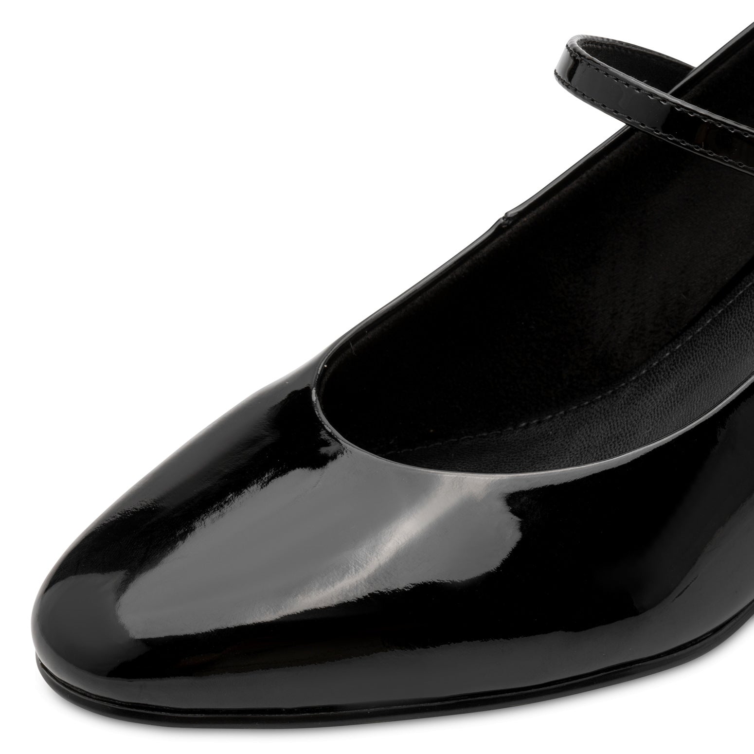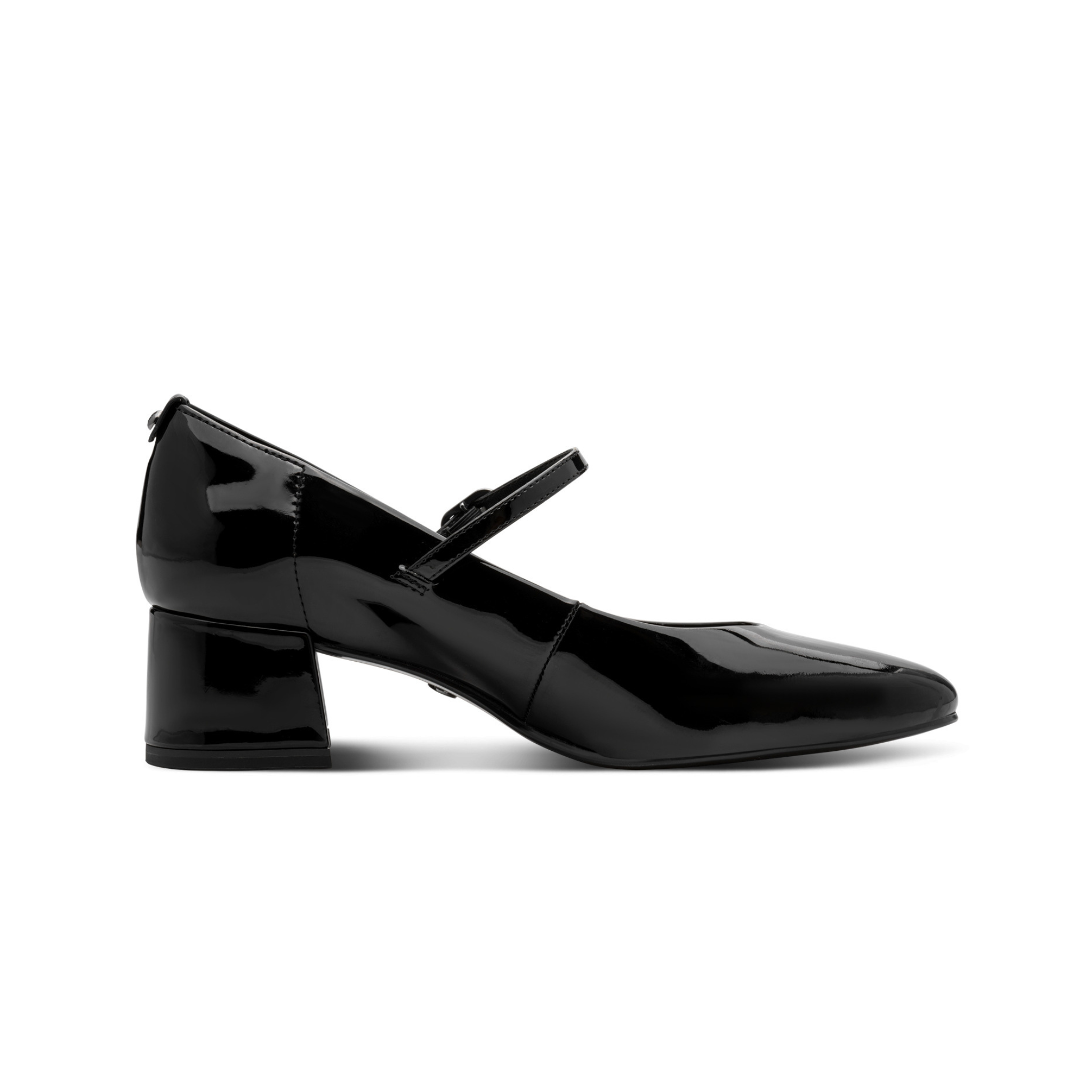 Mary Jane lucida, cinturino con fibbia regolabile su collo piede.