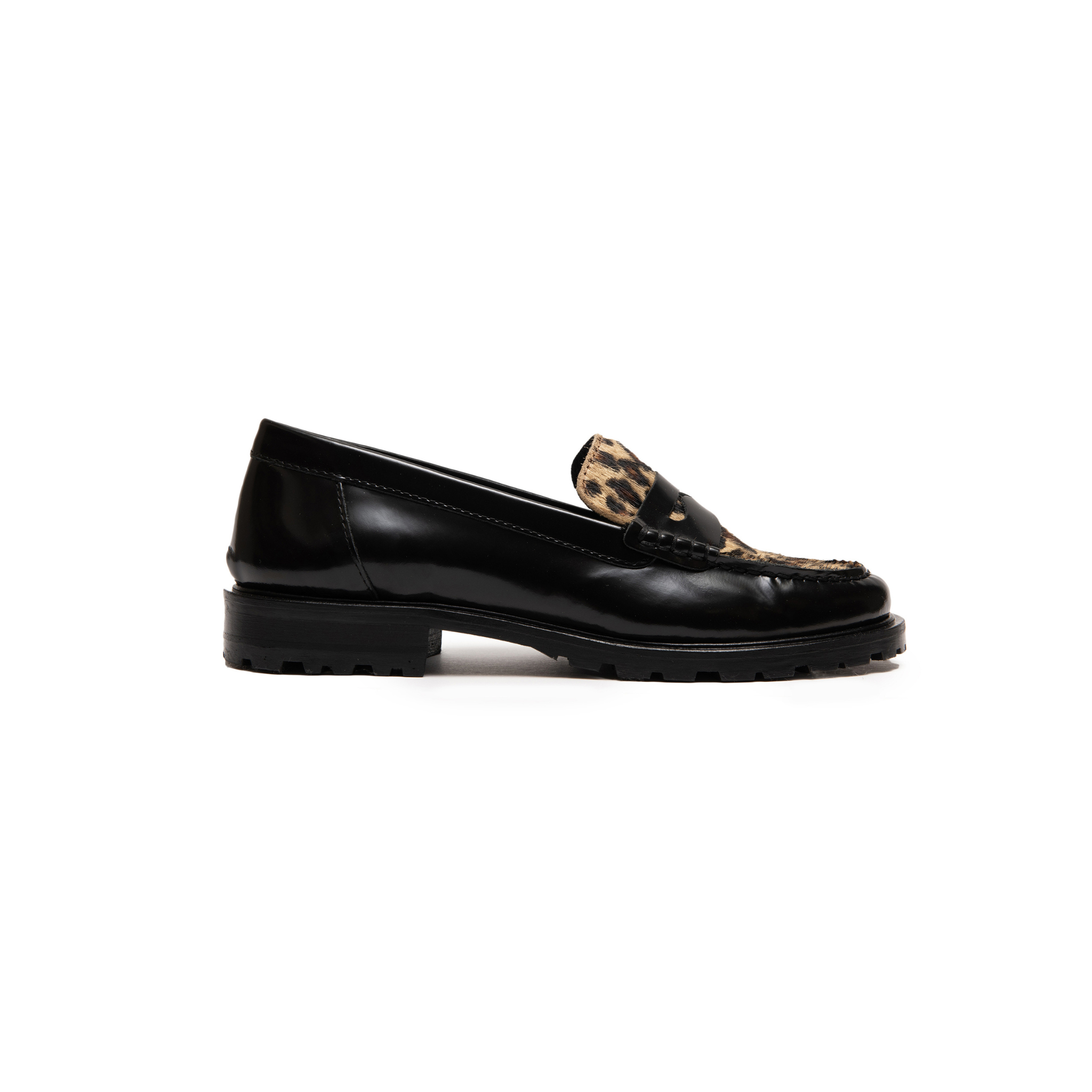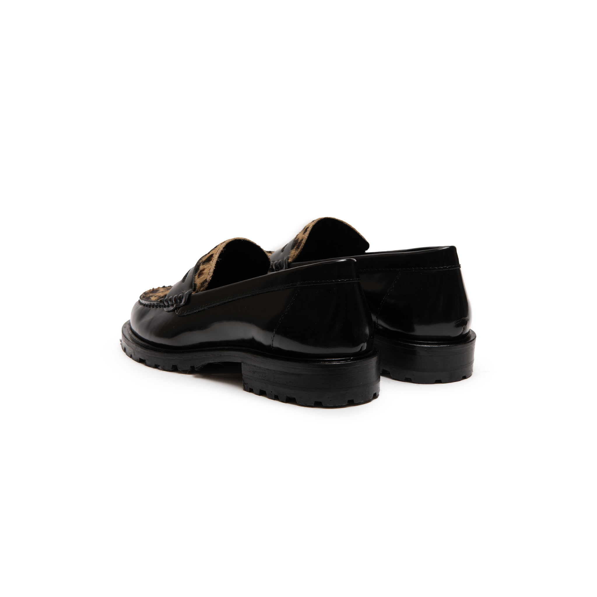 Mocassino in pelle con dettaglio in cavallino stampa animalier : grintoso e fuori dagli schemi.