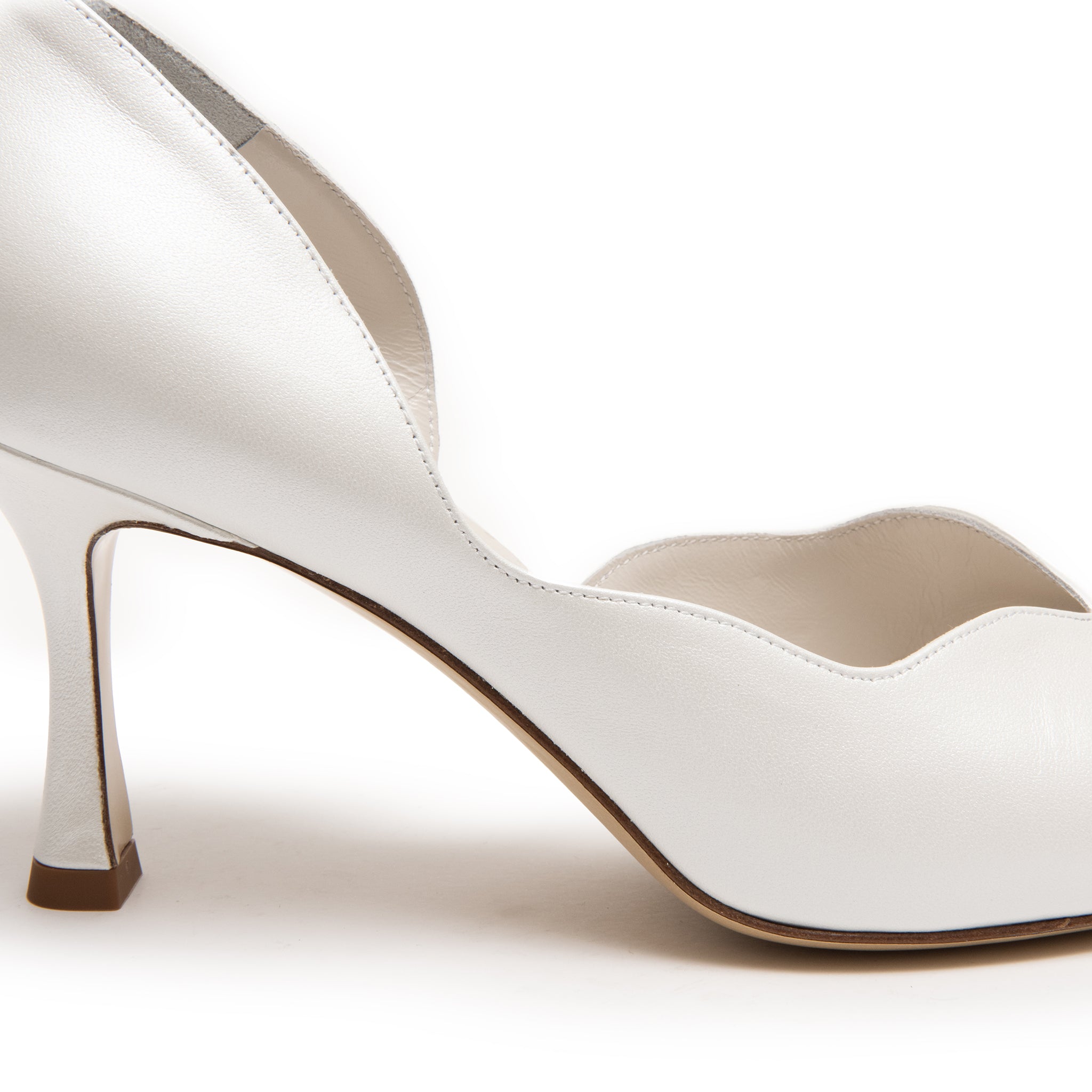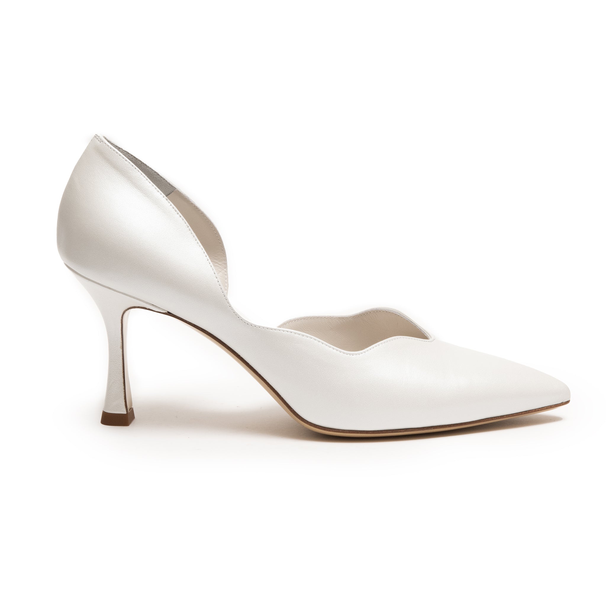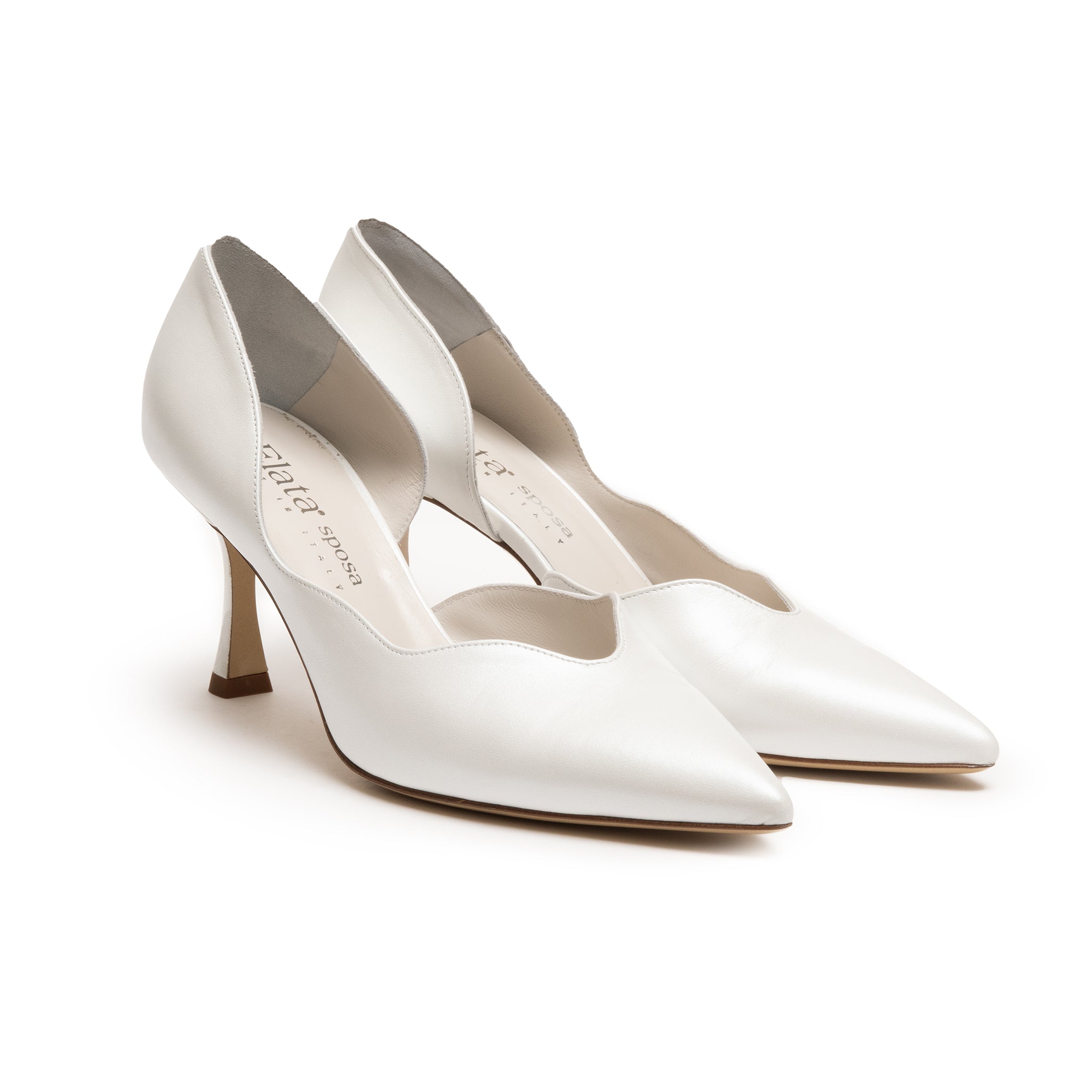 Decolletè dall'effetto perlato, caratterizzato da uno scollo a cuore che avvolge delicatamente il piede, creando un look romantico e sofisticato.