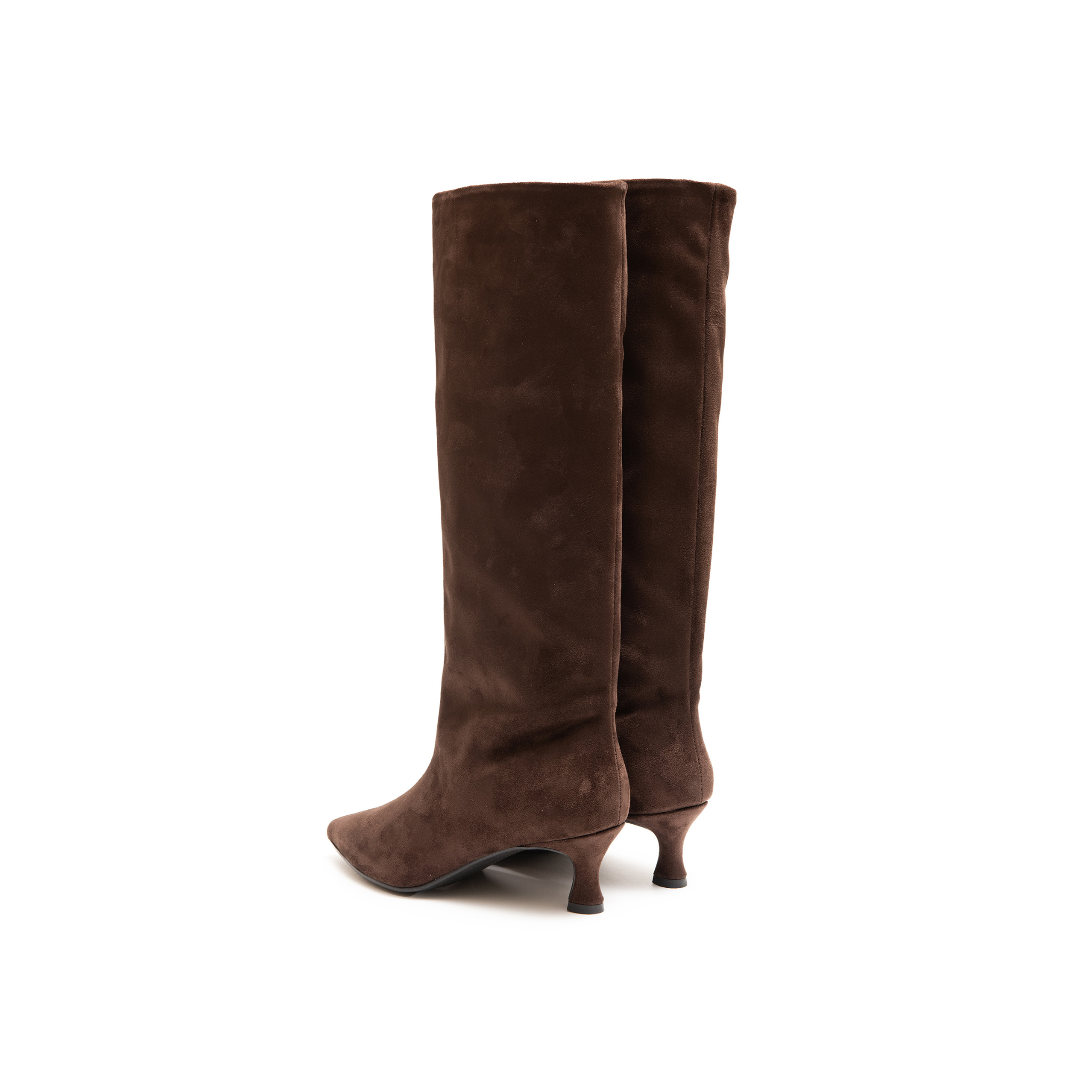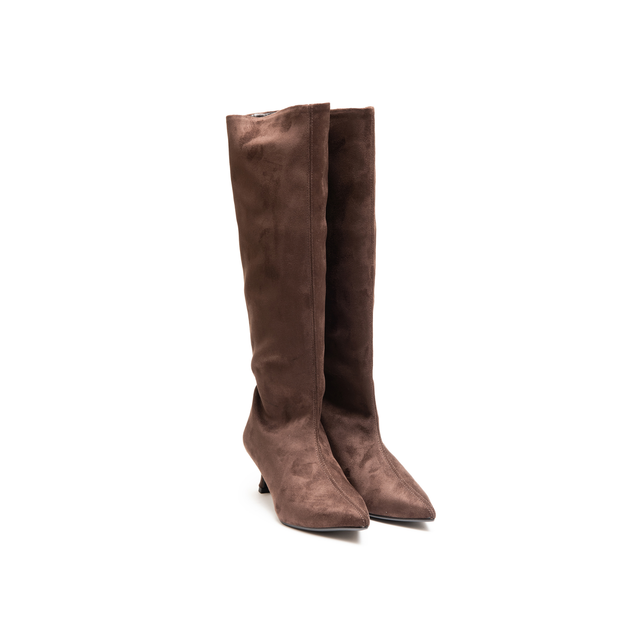Stivale in camoscio liscio colore testa di moro. Un modello sofisticato, ma comodo e pratico per ogni occasione.