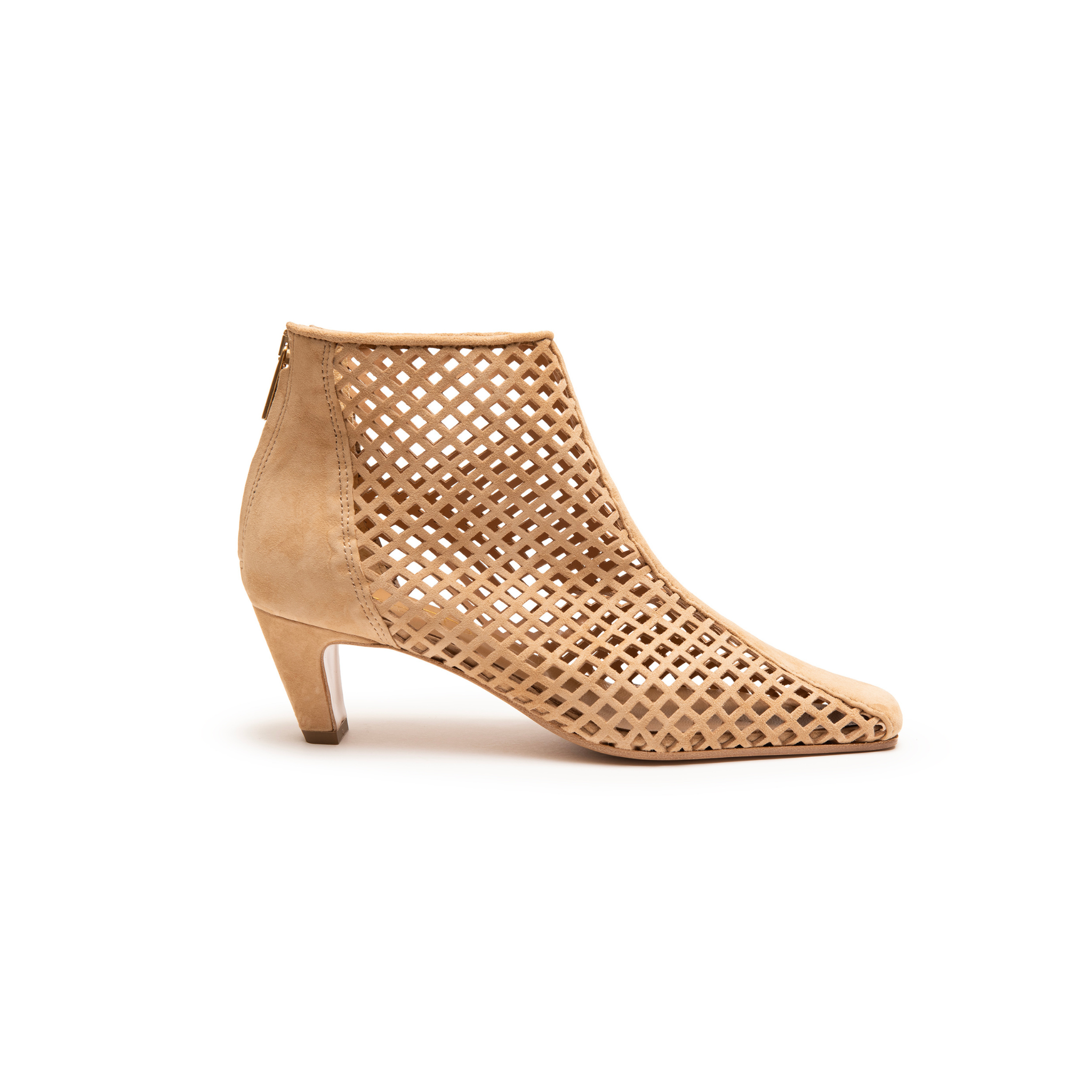 Stivaletto in camoscio traforato, realizzato interamente in pelle.